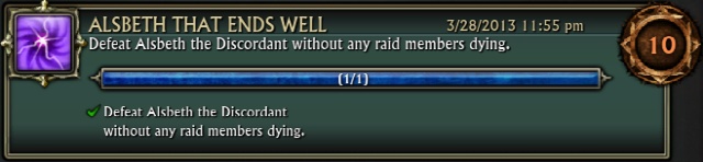 During the third phase, the Discordant Energies need to be killed ASAP. Alsbeth will be inside the Discordant Shield which reflects all damage back to the attacker. Once the shield drops, players with crystals should run in and each crystal will deal significant damage to her. Once the shield is down burn her until she puts it up again. Rinse and repeat until she is dead. The Discordant Shield can be purged off of her so this phase is rather easy. There will be a lot of raid wide damage that needs to be AoE healed though. As long as there are enough raid heals it is an easy win.