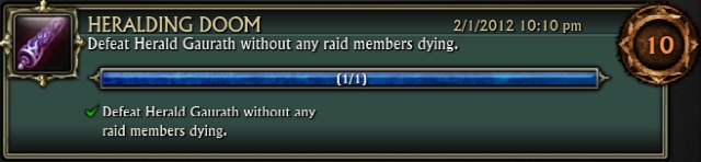 Keep this pattern up until Herald Gaurath is dead. With moderate DPS he can be killed by the 3rd air air phase. If a 4th air phase is reached, Herald Gaurath will hit his enrage timer by the time he lands. Get all DPS to burn him.