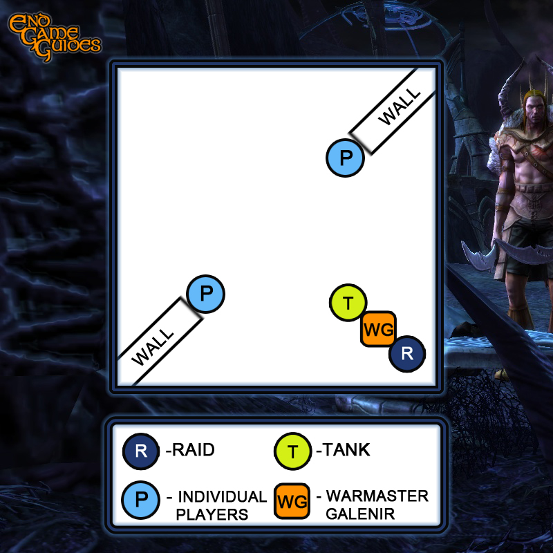 Two raid members with a cleanse, preferably chloros, -icars, or the Bard, need to stand on either side of the raid facing each other. They must be maximum distance from Warmaster Galenir. When Warmaster Galenir does his Charge ability he will charge the farthest raid member and apply Discordant Contagion on them. They can cleanse themselves and be far enough from the raid that it does not spread. Sometimes Warmaster Galenir will hit a raid member or tank with Discordant Contagion. If it gets cleansed quickly it will not spread, if not it will spread throughout the raid and do heavy excess raid damage. It can be healed through if the raid is well-geared.