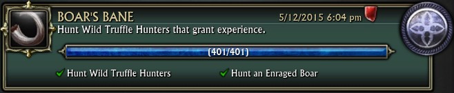 /setwaypoint 6111 2116 you will find many large Boars called ‘Wild Truffle Hunter’. On your quest sticky you will have a ‘Boar Lasso’