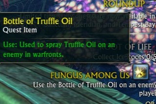 Use the bottle of Truffle Oil on an Enemy Player while in a warfront.