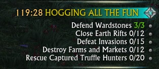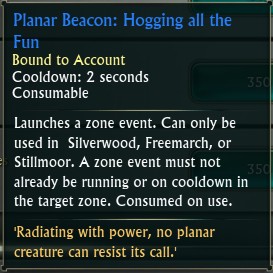 The zone event can be manually started by a player using a zone event lure. The event lure ‘Planar Beacon: Hogging all the Fun’ can be bought from the event quartermaster next to the quest givers. It costs 1500 Planarite and is reusable (Not consumed on use).